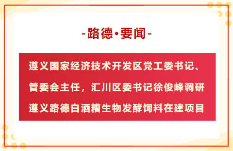 2023年8月29日,遵義國家經濟技術開發區黨工委書記、管委會主任,匯川區委書記徐俊峰一行蒞臨路德生物環保技術(遵義)有限公司(以下簡稱“遵義路德”)白酒酒糟循環利用建設項目進行考察調研。 徐俊峰書記一行實地考察項目建設 遵義路德總經理聶萬勝攜項目相關人員陪同調研,并就公司白酒糟生物發酵飼料業務開展、項目建設具體情況及重難點問題作了詳細匯報。 聶萬勝介紹,遵義路德是路德環境科技股份有限公司在赤水河流域醬酒核心產區布局建設的第三座白酒糟生物發酵飼料項目。項目建成投產后,可實現年產酒糟生物發酵飼料8萬噸,為匯川區白酒生產企業處理酒糟約20萬噸/年,