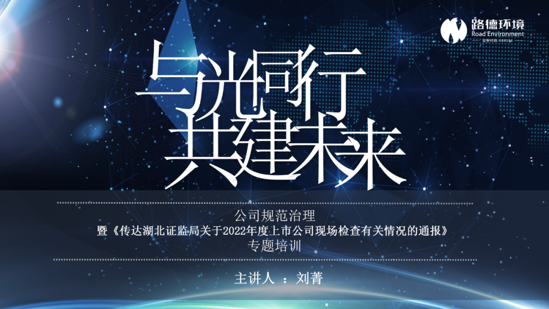 2月25日,為響應湖北證監局“進一步提升轄區上市公司規范運作水平,推動高質量發展”的號召,路德環境召開了“公司規范治理暨《傳達湖北證監局關于2022年度上市公司現場檢查有關情況的通報》專題培訓”活動。
