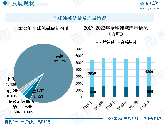 全球純堿儲量及產量情況 圖片來源/智研咨詢