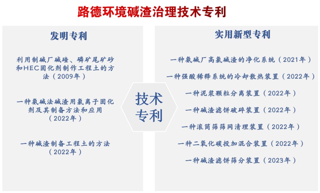 十年深耕,碩果累累。公司堿渣處理和資源化利用技術不僅摘得3項國家級發明專利和7項實用新型專利,更為堿渣治理業務的產業蝶變鋪平了道路。