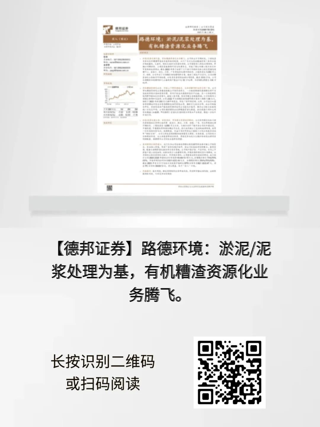 2023年6月6日,德邦證券發(fā)布了以《路德環(huán)境:淤泥/泥漿處理為基,有機糟渣資源化業(yè)務騰飛。》為主題的深度證券研究報告,首次覆蓋路德環(huán)境,并給予了“買入”評級。