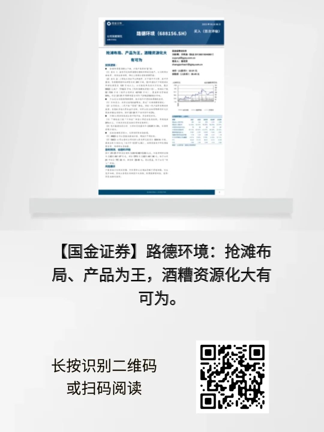 2023年6月6日,國金證券發布了以《路德環境:搶灘布局、產品為王,酒糟資源化大有可為》為主題的深度證券研究報告,首次覆蓋路德環境,并給予了“買入”評級。