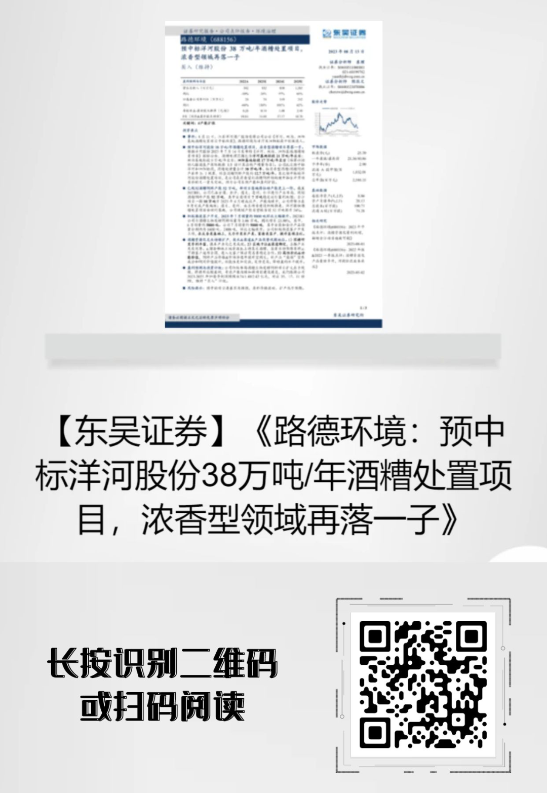 【點評報告】東吳證券點評路德環境:預中標洋河股份38萬噸/年酒糟處置項目,濃香型酒糟項目再落一子