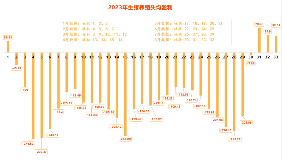 2023年以來,我國生豬養殖頭均盈利狀況 數據來源:發改委價格監測中心、卓創資訊