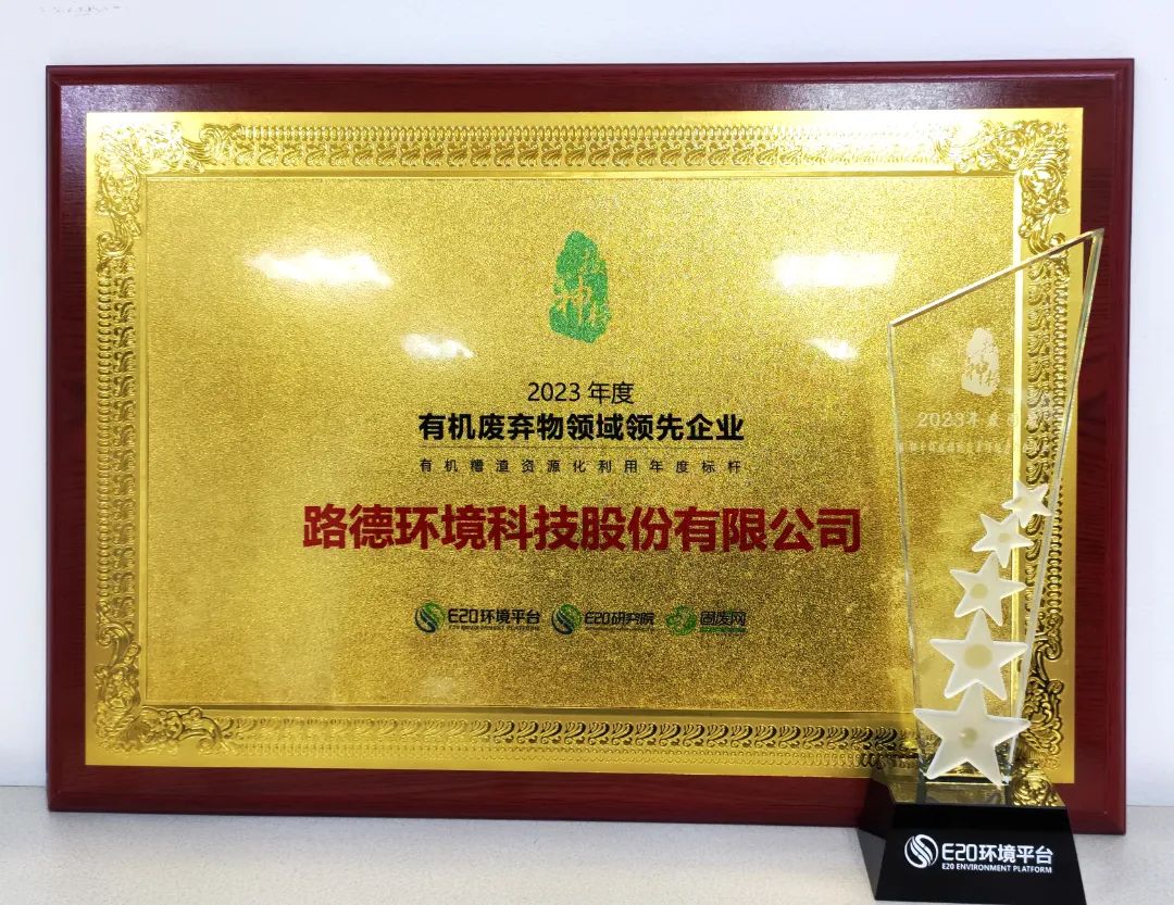其中,路德環境名列“2023年度有機廢棄物領域領先企業”榮譽榜單,獲評為“有機糟渣資源化利用標桿企業。”