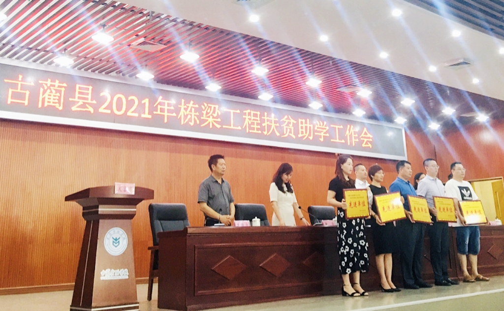 為援助“品學兼優、家境貧困”的寒門學子順利跨入大學校門,圓他們的大學夢,更好地造就祖國的棟梁之才,古藺縣政府特召開“棟梁工程”扶貧助學工作會。縣委副書記陳世偉、縣人大常委會副主任林燕、副縣長黃茜、縣政協副主席曹洪忠、縣扶貧基金會會長朱博宇等出席了當天的捐贈現場會,并為捐資助學先進單位授牌。